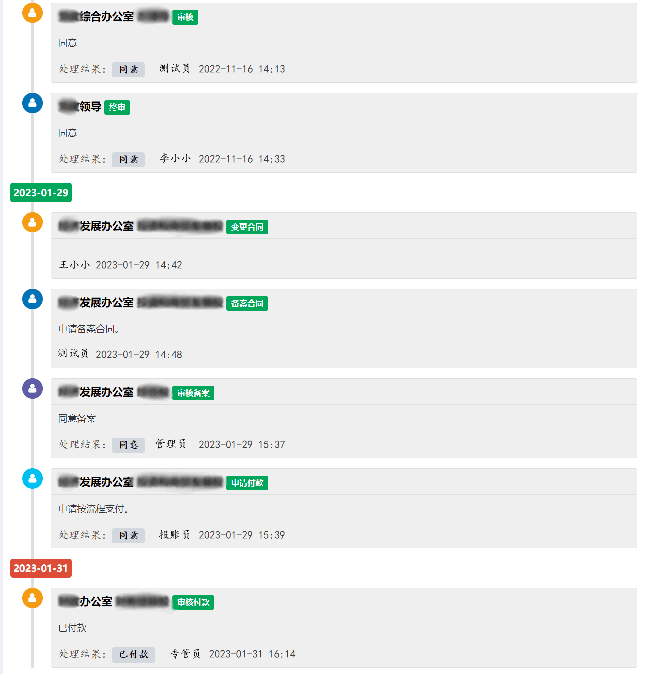 实时查看流程实例运转图,以及每一环节审批意见和操作痕迹