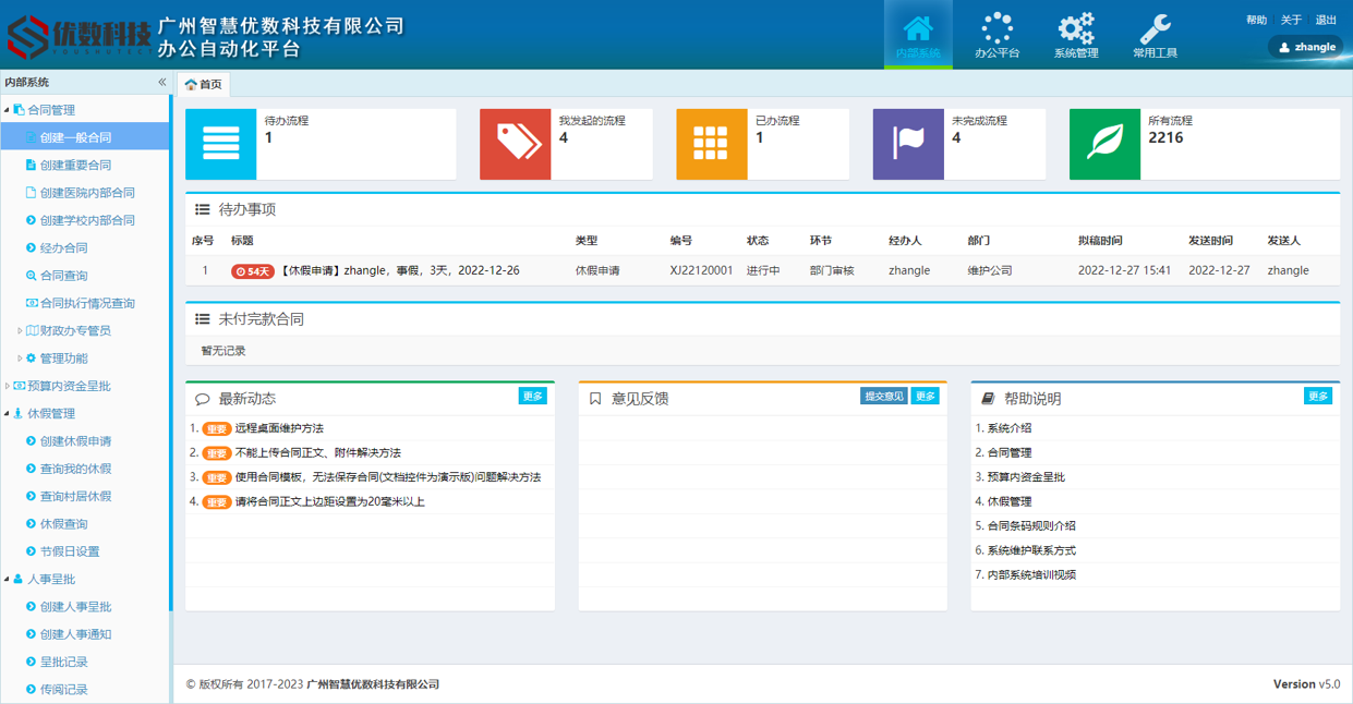 通用的办公自动化系统开发平台,在此基础上开发任意的办公自动化系统,任意复杂工作审批流程。集成了休假管理、人事管理、费用报销、文件共享、知识管理等常用功能