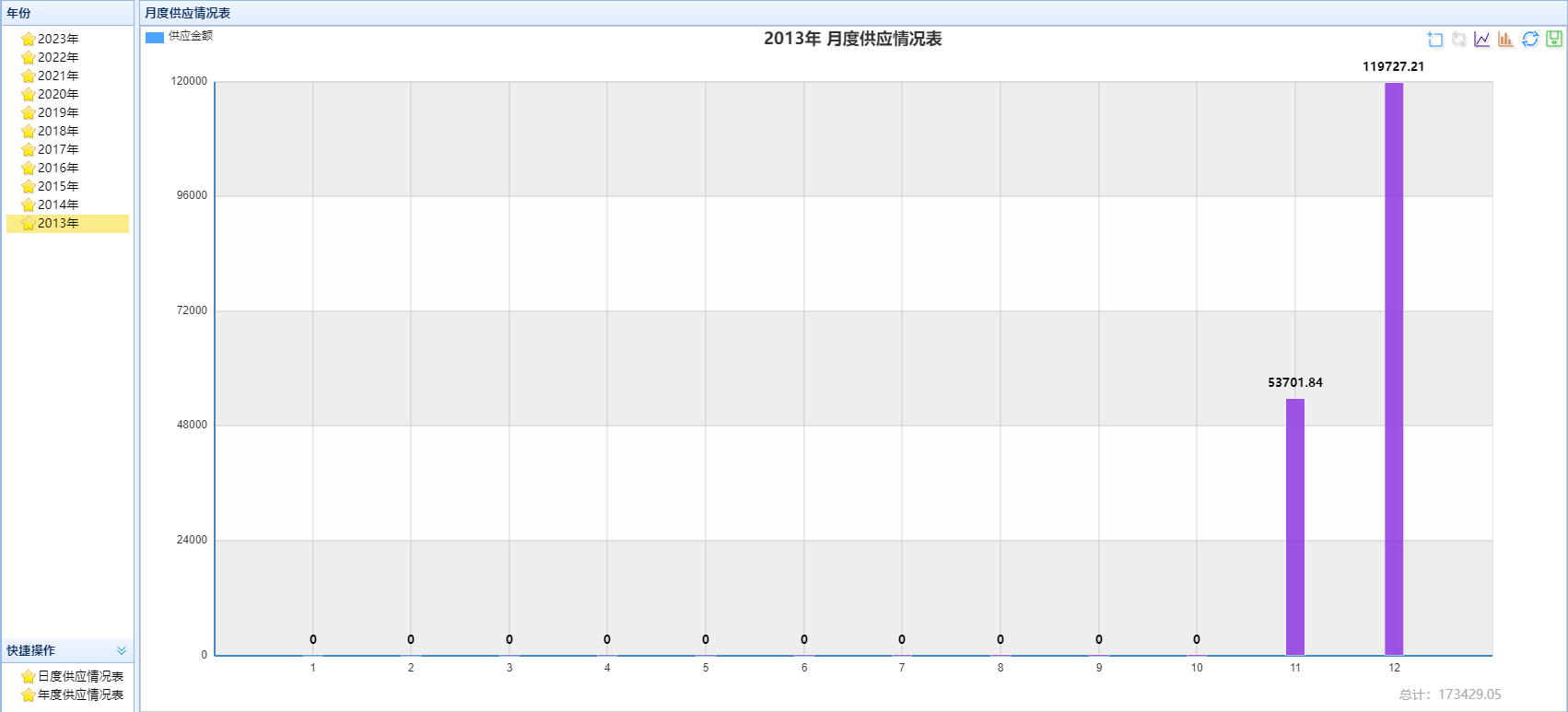 生成入库统计报表、出库统计报表、日常供应情况表